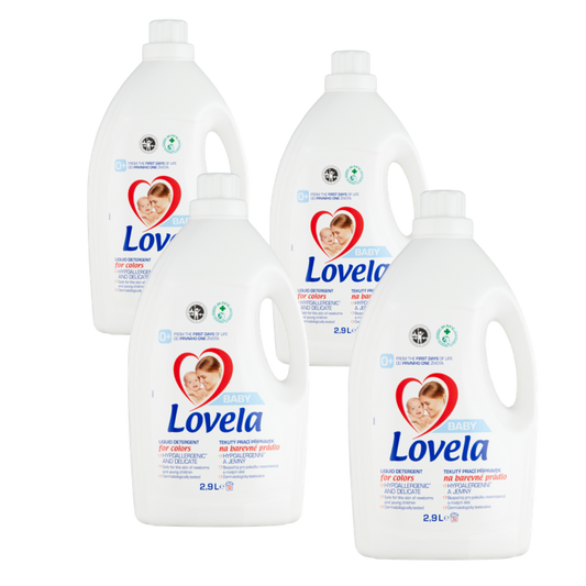 • Lovela Baby Hipoallergén folyékony mosószer fehér ruhákhoz, 4x2,9 liter (128 mosás)